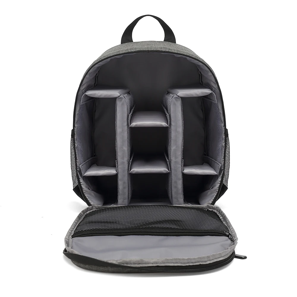 The camera bag is multi-functional to storage your cameras, accessories, water bottle, phone and other small things. Waterproof material and reasonable space, the backpack is suitable for outdoors or travel.